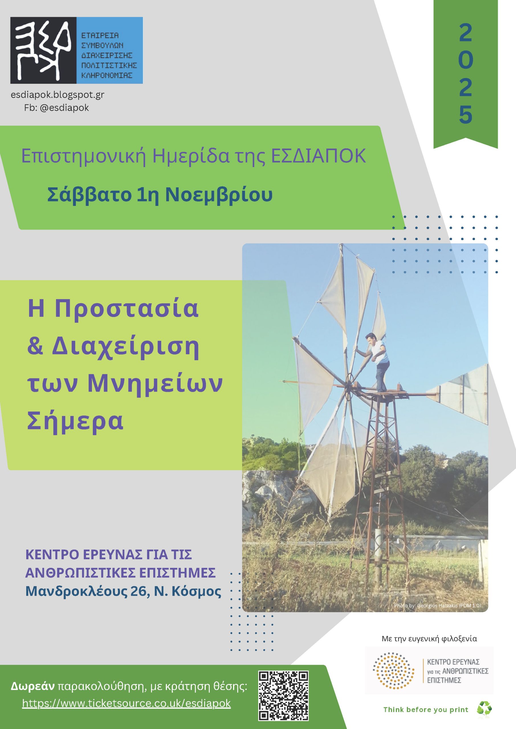 Η πολιτιστική μας κληρονομιά αντιμετωπίζει άνευ προηγουμένου απειλές. Η ΕΣΔΙΑΠΟΚ σας προσκαλεί σε μια σημαντική ημερίδα για να αντιμετωπίσουμε μαζί αυτές τις προκλήσεις.